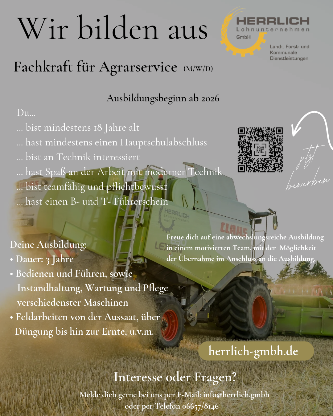 Wir bilden aus: Fachkraft Agrarservice (M/W/D)