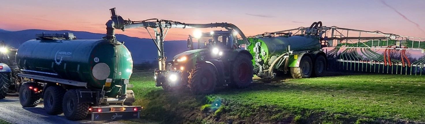 Transporte mit Sattelzug-Lkw, bis 150 km sowie Transporte von u.a. Gülle und Gärresten als Zubringer auf Kurzstrecke.